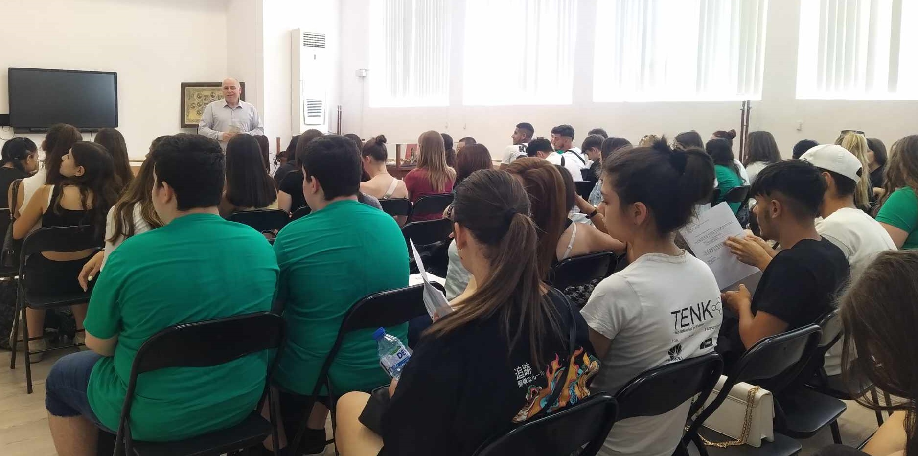 2025.04.30: На гости на студентите от специалността „Бизнес мениджмънт“ е студентът от Ташкент - Yosinbek Kholmukhammadov , който осъществява своята ЕРАЗЪМ мобилност за цял семестър в Русенски университет "Ангел Кънчев" . Той представи възможности за осъществяване на бизнес с узбеките, които имат приятелски настроения към България и заради големия принос на нашите строители във възстановяването на Узбекистан след голямото земетресение през 1966 г.