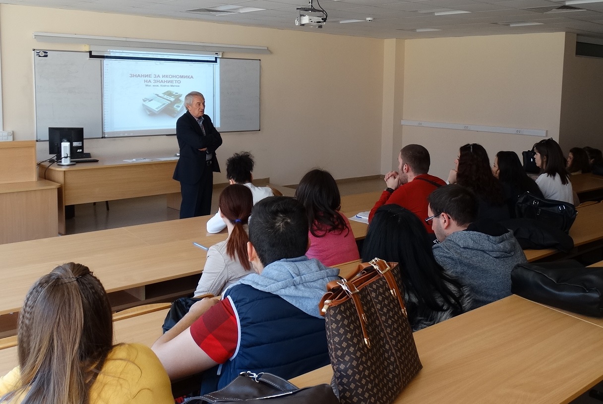 На 22.03.2017 инж. Койчо Митев проведе семинар на тема "Знание за икономика на знанието" със студенти от Факултет "Бизнес и мениджмънт". Основният акцент на беседата е върху управлението на процесите при защита на интелектуалната собственост при стартиране на нова икономическа дейност. Студентите се запознаха с реални казуси на български производствени фирми, изградили своята национална и международна пазарна експанзия въз основа на защитени интелектуални права върху промишлен дизайн. Снимка от събитието мoжете да видите ТУК.