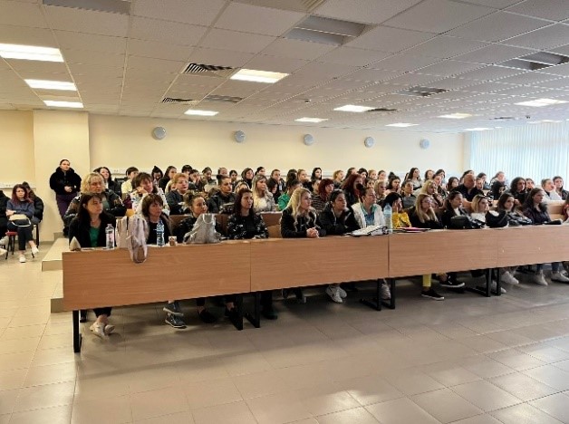 На семинара присъстваха студенти от специалности Медицинска сестра, Акушерка и Управление на здравните грижи. Бяха поканени практикуващи медицински сестри от всички лечебни заведения и социални структури в града.