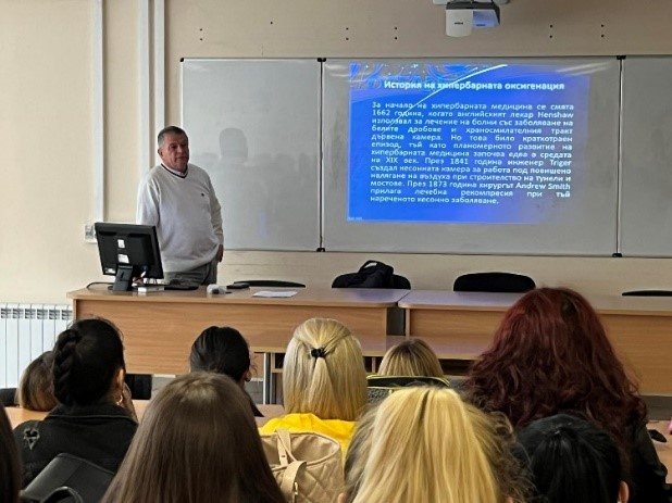 На 19.05.2025г. се проведе вдъхновяваща и мотивираща  среща с успешно реализирала се медицинска сестра от Англия.  Мария Йорданова представи своя вълнуващ разказ пред студенти от специалности Медицинска сестра и Акушерка. Тя сподели своя професионален път на Психиатрична медицинска сестра и кариерното и израстване в областта на сестринските грижи в областта на Хранителните разстройства. Нейното послание към студентите беше да учат и придобиват опит непрекъснато, дори да си мислят че в момента е излишно, придобитият опит и знания ще им послужат, тогава когато е необходимо. В последните 15 минути от срещата се проведе дискусия - студенти и преподаватели задаваха въпроси за организацията на обучението в Англия, възможностите за кариерно израстване, автономията на професията, както и  за научно изследователската дейност на медицинските сестри.
