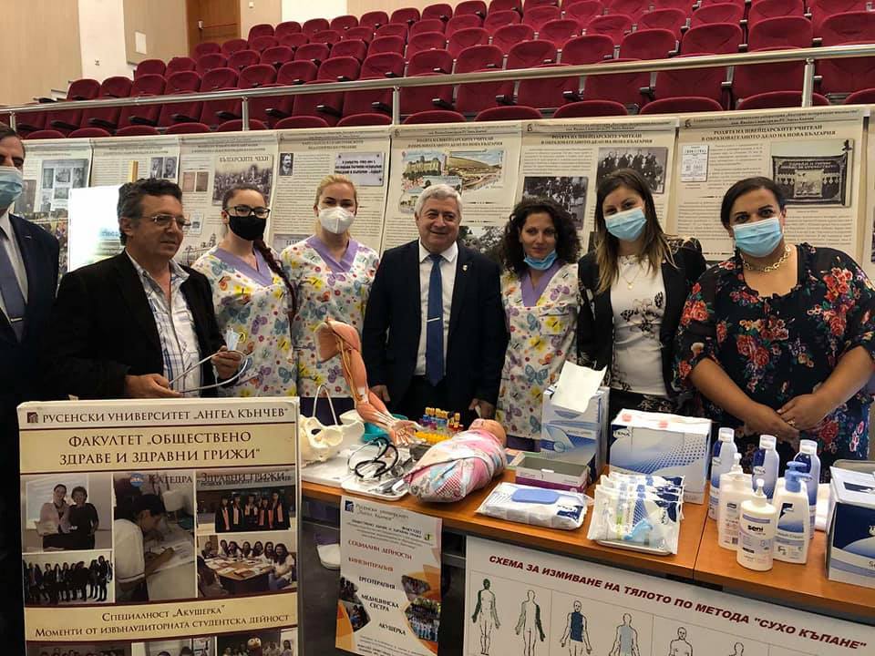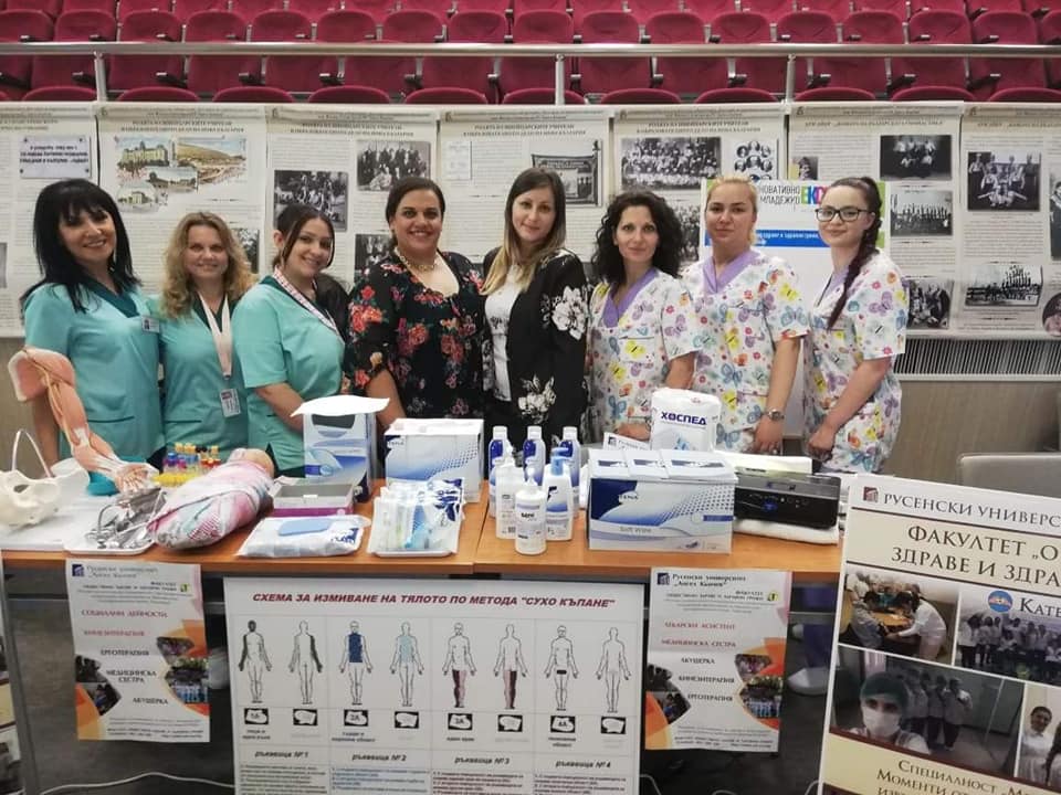 На 10 Юни 2021г., в Русенски университет „Ангел Кънчев" се проведе „ИНОВАТИВНО МЛАДЕЖКО ЕКСПО V"  от Академичното ръководство и Студентския съвет на Русенския университет под егидата на Министъра на образованието и науката, България. Факултет Обществено здраве и здравни грижи, Катедра Здравни грижи се представи с тема: „ Алтернативни методи и средства за осъществяване на качествени и безопасни хигиенни грижи". В него взеха участие преподаватели и студенти от  специалност Акушерка първи курс, от специалност Медицинска сестра първи курс, катедра Здравни грижи към Русенски университет „Ангел Кънчев" .