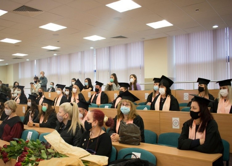 На 26.11.2021 год. В зала „Сименс" на Русенски университет се състоя тържествено връчване на дипломите на първия випуск студенти, завършили ОКС „Магистър"  Управление на здравните грижи.